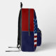 This design features American flag and map pattern with red blue and white stripes. Custom American flag monogrammed name backpack in high quality. This design can be easily edited. If you need help with the customisation please message me via Zazzle.