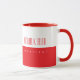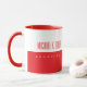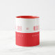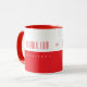 A modern hot red and white coffee-mug personalised with special name and profession (architect).