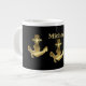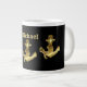 Monogram Name Black & Faux Gold Nautical Anchor Large Coffee Mug