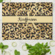 Monogram Name Black Gold Leopard Print Cheetah Tea Towel