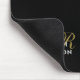 Stylish elegant premium look refined manly mouse pad, customizable personalizable with monogram, initial letters and name. Clean neutral monochrome black background, elegant gold calligraphy script handwritten initial letters, and classy white typography for the name. Beautiful and timeless, for you or as a thoughtful custom useful tech gift for a gentleman. Unique personalized computer or laptop accessory, for home, home office or business office space. Very affordable, a gift under 15 dollars for him, suitable for many occasions and celebrations. As a birthday, Father’s Day, graduation, Christmas, even his retirement present for example.