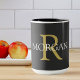 Personalise this black Coffee Mug with your Monogram and Name. This simple Classic Design In Gold and White Text can also be used for a Company Name and website.