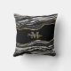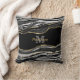 Monogram Name Black Marble Agate Gold Glitter Cushion