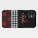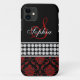 This monogrammed black and red damask iPhone5 Case-Mate Case has a photo of this design embedded into the hard plastic cover. The design is made up of a floral damask pattern, a print of three rows of white diamonds in a stripe and an area where you can add your name and monogram initial in gorgeous script fonts. This iPhone 5 case cover is the perfect way to accessorise your iPhone 5. Be stylish and girly all at the same time. Design by Elke Clarke©2012. Graphics licensed for use. Contact designer for other background colours.