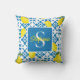 Monogram Name Blue French Tile Lemon Pattern Cushion