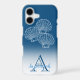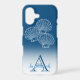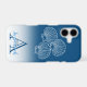 The design features a blue ombre case and the custom name and initial letter monogram sit in the lower white area. The three scallop shells are set above the template text. Personalise the text, remove one or all the text or click customise to select a font style, size, and colour you prefer.