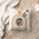 Monogram Name Boho Arch Multi Photo Trendy Girly Mid Century Throw Pillow features a photo collage of three of your favourite photos on a bohemian arch in orange and blue on a white background with your personalised name and monogram in a modern orange script. Personalise by editing the text in the text boxes provided and adding your photos to the template. Perfect for work, home or school for birthday, Christmas, Mother's Day, sister, best friend and more. PHOTO TIP: centre your photos before uploading to Zazzle. Designed by ©Evco Studio www.zazzle.com/store/evcostudio