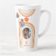Monogram Name Boho Arch Multi Photo Trendy Girly Mid Century Latte Mug features a photo collage of three of your favourite photos on a bohemian arch in orange and blue on a white background with your personalised name and monogram in a modern orange script. Personalise by editing the text in the text boxes provided and adding your photos to the template. Perfect for gift for birthday, Christmas, Mother's Day, sister, best friend and more. PHOTO TIP: centre your photos before uploading to Zazzle. Designed by ©Evco Studio www.zazzle.com/store/evcostudio