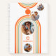 Monogram Name Boho Arch Multi Photo Trendy Girly Mid Century Notebooks features a photo collage of four of your favourite photos on a bohemian arch in orange and blue on a white background with your personalised name and monogram in a modern orange script. Personalise by editing the text in the text boxes provided and adding your photos to the template. Perfect for work, home or school for birthday, Christmas, Mother's Day, sister, best friend and more. PHOTO TIP: centre your photos before uploading to Zazzle. Designed by ©Evco Studio www.zazzle.com/store/evcostudio