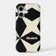 Design features a trendy geometric black and beige pattern with a retro feeling. Personalise our simple to use template design with custom name, initials or text or delete text. Easily customise background colour in design tool for a truly unique option!