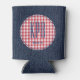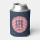 Monogram Name Dark Blue Denim Print Gingham Check Can Cooler