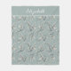 Monogram Name Dusty Blue White Floral Botanical Fleece Blanket