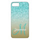 Monogram Name Girly Teal Glitter Gold Ombre Case-Mate iPhone Case