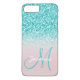 Monogram Name Girly Teal Glitter Pink Ombre Case-Mate iPhone Case