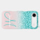 Monogram Name Girly Teal Glitter Pink Ombre Case-Mate iPhone Case