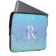 Monogram Name Initial Blue Green Sparkle Girly Laptop Sleeve