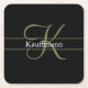 Monogram Name Initial Script Black Green White Square Paper Coaster