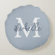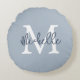 Monogram Name Initial Script Dusty Blue Round Cushion