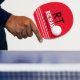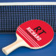 A stylish and monogrammed design on a red table-tennis-paddle to personalise with your own name and initials