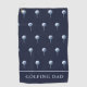 Navy blue golf towel with a pattern of white golf balls sat on a tee. There's space on the golf balls to add your initial and your name too. Makes a really useful gift for the golfer in your life. Order your personalised golf towel today!