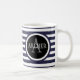 Monogram Name Navy Stripes Coffee Mug