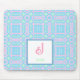 Monogram Name Neon Pink Blue Hearts Pattern Mouse Pad