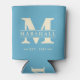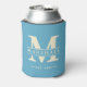 Monogram & Name Overlay Aqua Sky Can Cooler