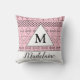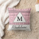 You'll love this cute pink and white throw pillow! Geometric pattern print background. In white background is monogrammed initial and name in script.