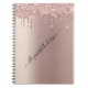 Monogram Name Rose Gold Glitter Drips Trendy Girly Notebook