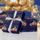 Monogram Name Rustic Red Truck Navy Christmas Wrapping Paper