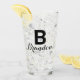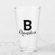 Monogram, name, simple, black, script Beer Glass. Groomsmen gift.
