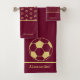 Monogram name Soccer Football Gold Burgundy Bath Towel Set