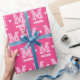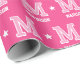 Elevate your gift-giving with monogrammed wrapping paper! This sports jersey-style pattern features a retro block-style font, stars, and is personalised with a monogram initial and the recipient's name. You can also customise the background colour by using the design editor tool. A cute design that would suit many occasions, including Christmas, birthdays, graduations and more — perfect for all ages, from kids and teens to family and friends! This seamless gift wrap is available with a matte or glossy finish. Printed colours: pink and white.