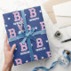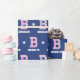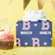 Elevate your gift-giving with monogrammed wrapping paper! This sports jersey-style pattern features a retro block-style font, stars, and is personalised with a monogram initial and the recipient's name. You can also customise the background colour by using the design editor tool. A cute design that would suit many occasions, including Christmas, birthdays, graduations and more — perfect for all ages, from kids and teens to family and friends! This seamless gift wrap is available with a matte or glossy finish. Printed colours: pink, dark blue navy and white.