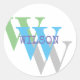 Add a stylish personal touch with this custom monogram name sticker in a modern color palette of grey, green, blue, and white. Whether you're labeling party favors, sealing envelopes, personalizing school supplies, or branding gifts, this classic round sticker is a versatile choice. Customize with your initial and name for a clean, polished look — perfect for weddings, birthdays, businesses, or everyday use.