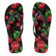 Sweet cherries pattern flip flops with "freshly picked" single and paired red cherries with green leaves and stems still intact - customise her monogram and name - by katz_d_zynes