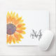 This floral monogrammed mouse pad features a yellow watercolor sunflower.