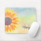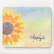 This floral monogrammed mouse pad features a yellow watercolor sunflower.
