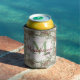 Monogram Name Winter Woodland White Rose Pinecone Can Cooler