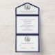 Monogram Nautical Anchor Greenery Navy Wedding All In One Invitation