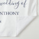 The clean typography and balanced spacing give the tapestry a polished, cohesive look suited for beach weddings, coastal venues, yacht club receptions, or navy-themed celebrations.