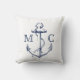 Nautical style pillow featuring a navy anchor with 2 spots for initials.