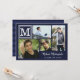 Large monogram navy blue design with four photos on the front and graduation party invitation on the back.