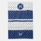 Monogram Navy Blue and White Polka Dot Tea Towel