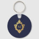 Monogram Navy Blue Elegant Faux Gold Crest Initial Key Ring