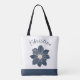 Personalised Navy Blue Flower Design Tote Bag. Add your name or initials to personalise.
