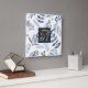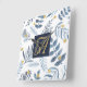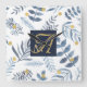 Wonderfully elegant monogrammed newly weds gift featuring a watercolor botanical leaf pattern in white and blue with gold calligraphy style lettering.