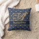 Monogram Navy Blue Gold Crown King Queen NEWLYWEDS Cushion