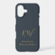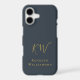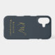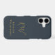 Elegant monogrammed neutral stylish simple premium look iPhone case, customisable personalizable with monogram initial letters and the name, appropriate for a gentleman. Refined monochrome classy navy blue background, trendy gold calligraphy script handwriting for the initials, and gold serif typography for the name. Beautiful minimalist minimal and timeless, for you or as a thoughtful custom useful tech electronic accessory gift for him. A best friend, a coworker, a boss, or someone from the family, a dad, a brother, even a grandfather will be very happy to receive this cellphone protection case. For personal or professional business use. Very affordable, a custom gift under 35 dollars for him, suitable for many occasions and celebrations, like birthday, Father’s Day Christmas, graduation, retirement, anniversaries or just to make him a little surprise, without any special occasion. Modern lifestyle customised tech men gift.