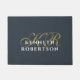 Personalized unique elegant refined manly doormat, customizable with monogram, initial letters and name. Navy blue coastal neutral background appropriate for a gentleman, elegant gold calligraphy script handwritten initial letters, and classy white serif typography for the name. Premium look useful outdoor decor, monochrome, minimalist, simple, monogrammed, easy to match with every style of house. Elevate your front door decor or apartment door aspect with this timeless yet trendy piece, and protect your interior from dirt and dust. Make a thoughtful custom gift under 40 dollars at the small size, for him. Suitable for many occasions and celebrations, like birthday, Father’s Day, Christmas, graduation, anniversaries. Also a beautiful aesthetic housewarming, new homeowner gift, or present for a perfect host that loves decorating with style. Can be also a great idea to use it when staging an apartment or house to sell, make it more attractive to potential buyers.